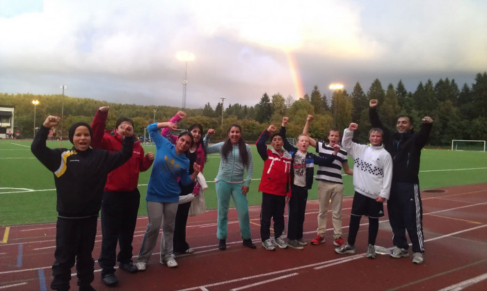 For å gjøre det beste ut av manglende hall, fikk alle medlemmer tilbus om å bli med på en Boot Camp-trening ute i stedet. Tirsdag 18. september var en tøff gjeng ute og trente i regn, hagl, torden og lyn - de fortjener applaus! Instruktør Marianne kan fortelle følgende om økta: "Vi startet økta med å løpe 3 runder rundt den hagl-belagte banen, der de skulle hoppe 10 spensthopp hver gang det lynte, og ta 10 pushups når det tordnet. Og det ble fakisk en del ganger i løpet av rundene! Deretter tok vi på oss hansker og hadde sparringssura, og 1-poengskamper. Som avslutning gikk vi i skogen og sparket harde frontkick og sidekicks inn i trærne, med løping imellom. Alle skulle finne to trær de skulle løpe imellom og sparke på, og helt til slutt løp vi en siste seiersrunde rundt banen, og tok fellesbilde under regnbuen. Mange våte, men veldig blide og entusiastiske Oslo Østere var til stede." Godt jobba folkens!